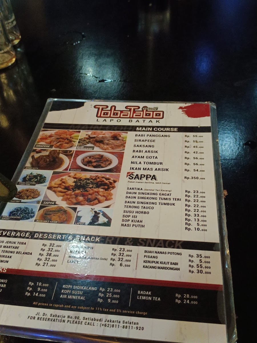 When you step into Toba Tabo Lapo Batak, you're in for an unforgettable taste of Batak cuisine. Nestled in the heart of Jakarta, at Gedung SOPO MSA, the menu offers a mix of traditional Batak flavors with a welcoming twist. The Toba Tabo Lapo Batak Menu is filled with rich, savory dishes that will transport you straight to the North of Indonesia. From the famous Babi Panggang, with its perfectly crisped pork, to the comforting Soto Batak, each dish tells a story of culinary heritage. Whether you’re here for a casual meal with friends or a special family gathering, the menu is sure to satisfy all cravings. The vibrant flavors of aromatic spices, fresh herbs, and expertly prepared meats make every bite memorable. Take your time to explore the variety of choices - each plate is a true celebration of Batak’s culinary traditions.